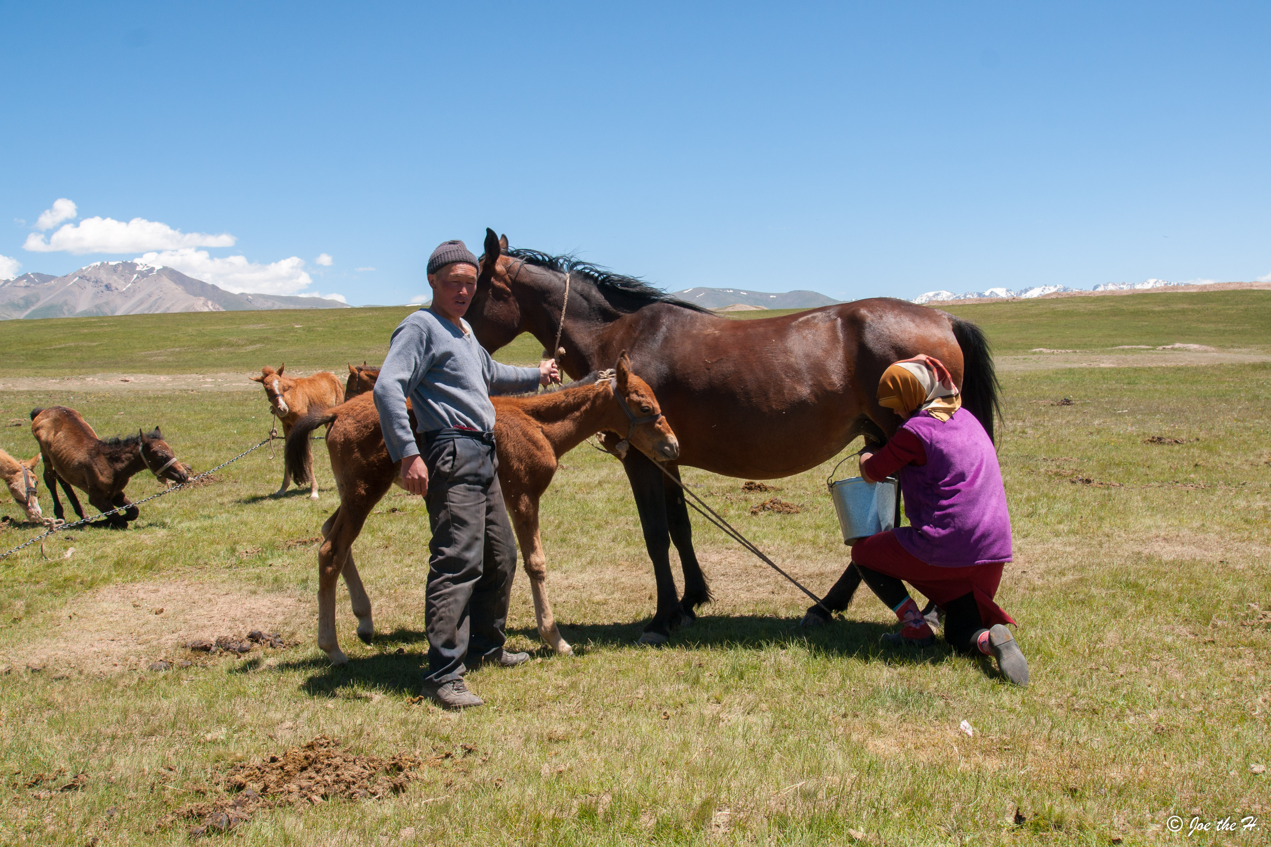 Die kirgisischen Pferde sind eher klein und sehr robust. Sie sind perfekt ihrer Umgebung angepasst und das Wort „Trittsicherheit“ erhält für uns Europäer eine neue Bedeutung. Mühelos durchqueren diese Pferde reissende Flüsse, traversieren rutschende Geröllfelder, meistern selbst extrem steile Aufstiege, die den Zuschauer an Kletterpassagen für Pferde erinnern. Diese Pferde in ihrer Umgebung zu sehen, lässt selbst uns, die wir doch einige Erfahrungen mit Pferden schon gemacht haben, jedes Mal aufs Neue staunen!